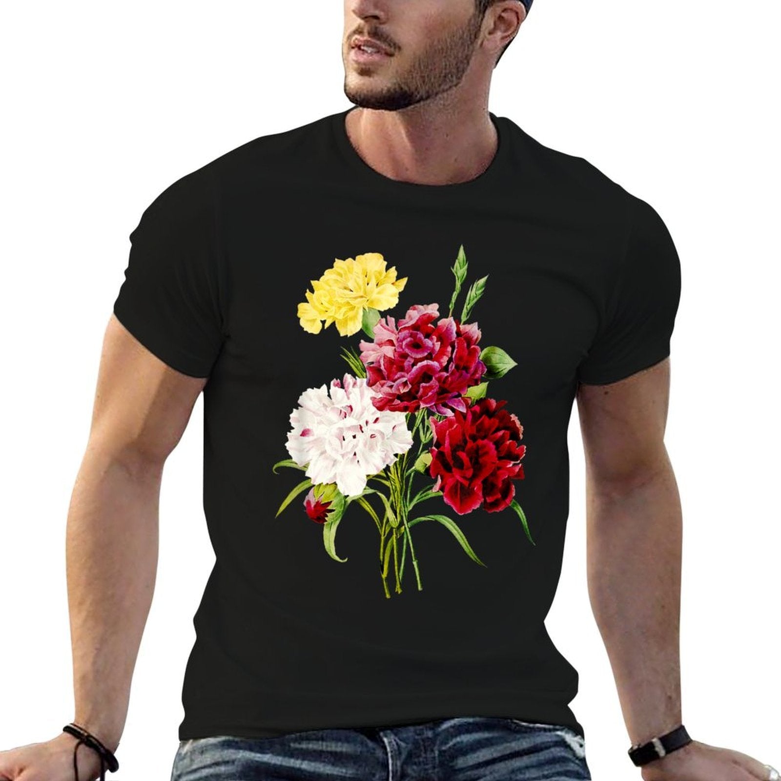 - Avoid bleach to preserve the Vintage Botanical Carnation Flower Illustration Art T-shirt’s bold graphics and cotton integrity.