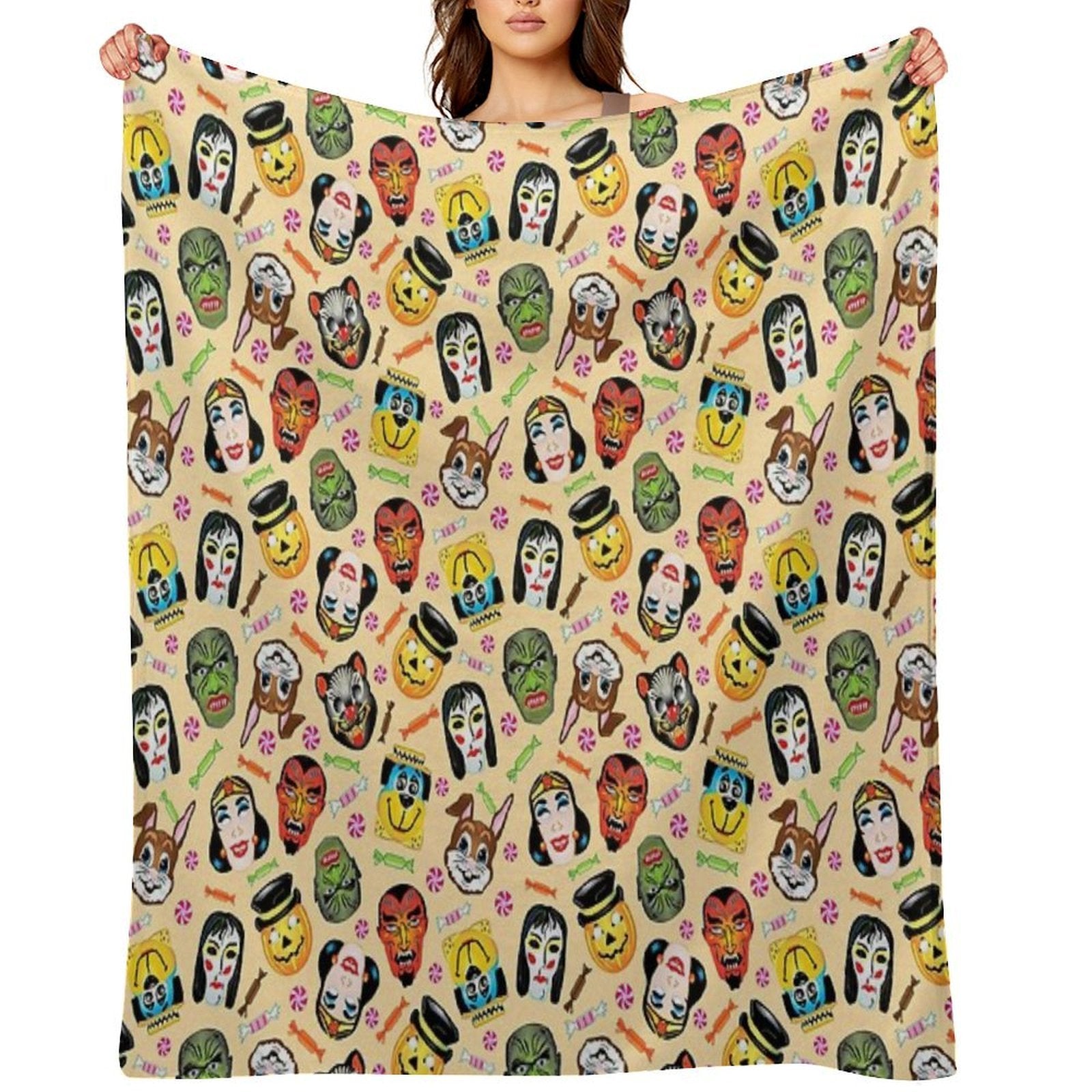 - Perfect for chilly movie nights, camping trips, or adding a cozy touch to your Vintage Halloween Masks And Hard Candy-styled living space.