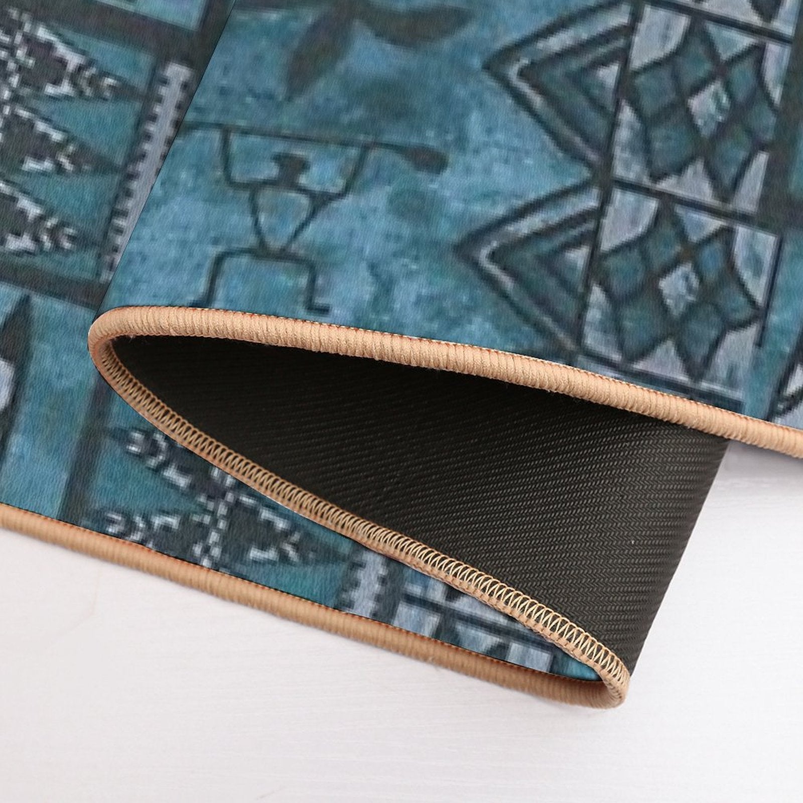 - Non-slip rubber backing grips floors securely, ideal for Vintage Hawaiian Tapa Ocean Blue Mat placements on tiles, wood, or marble.