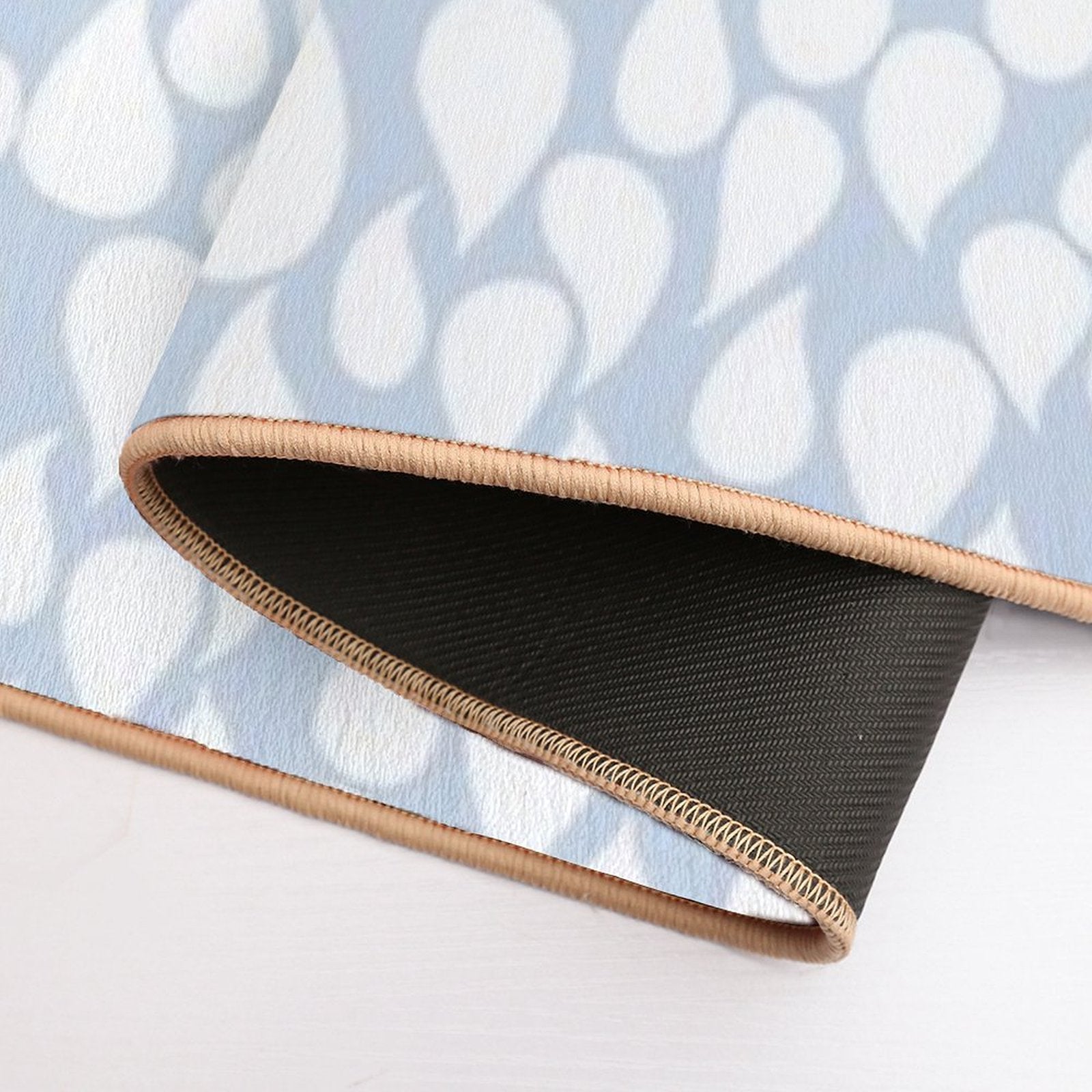 - Non-slip rubber backing grips floors securely, ideal for White Droptear on Light Blue Background Mat placements on tiles, wood, or marble.