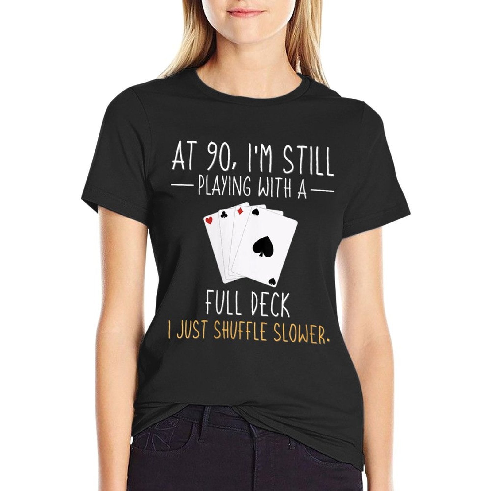 - Heat-transfer prints retain vibrant colors wash after wash, perfect for Womens 90th Birthday Card Player Blackjack, Poker, Bridge - 90 casual outfits or statement streetwear.