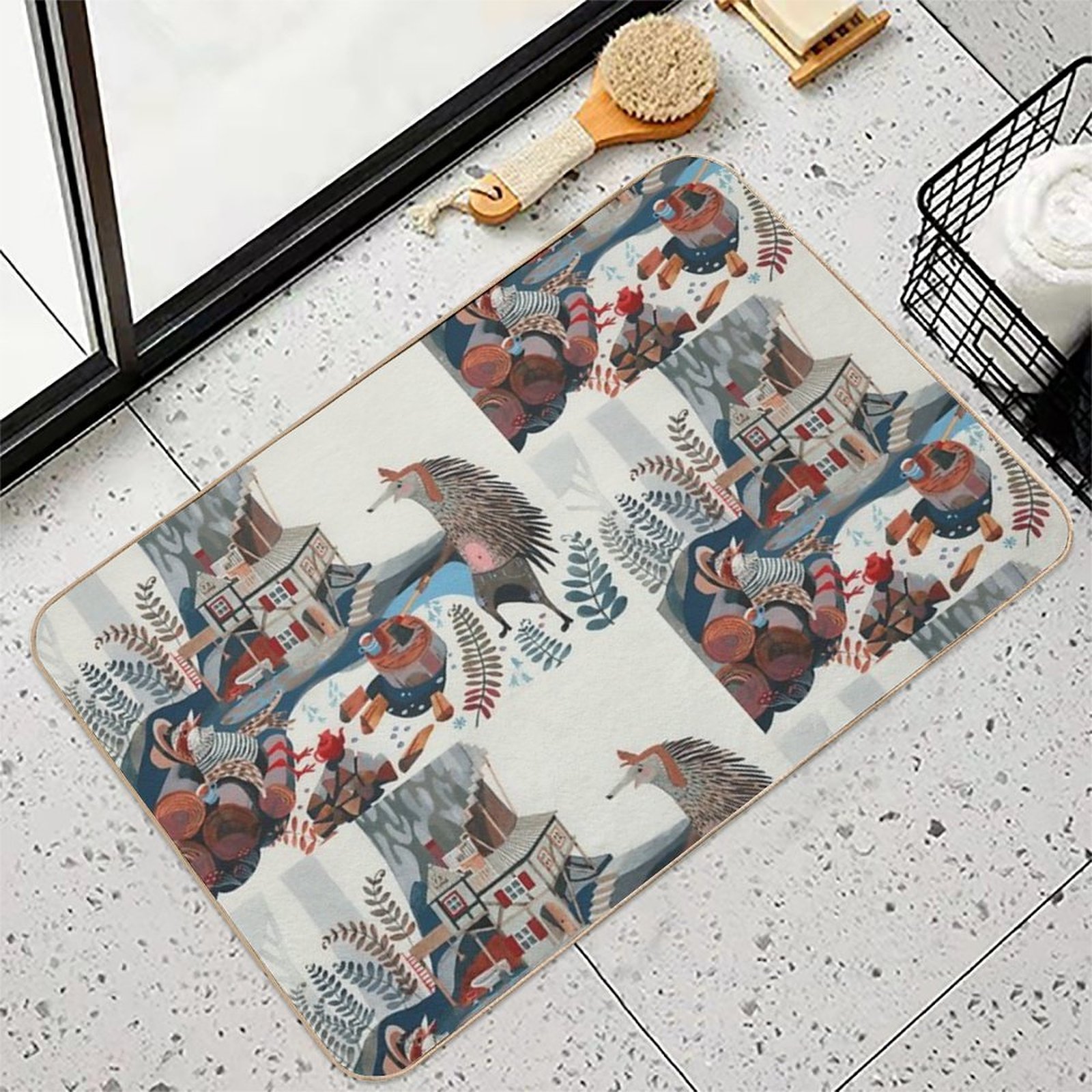 - Use as a vanity rug, guest suite accent, or mudroom defender – the Wood Chopping Friends Mat adapts to any space.